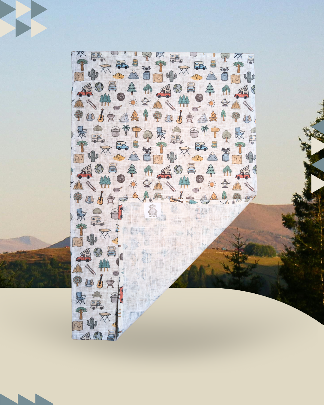 Dieses Küchentuch bringt echtes Outdoor-Feeling in deine Küche! Über das gesamte Tuch verteilt finden sich liebevoll gestaltete Camping-Motive – vom Camper und Lagerfeuer über Grill und Gitarre bis hin zu Bäumen und praktischem Campingequipment.